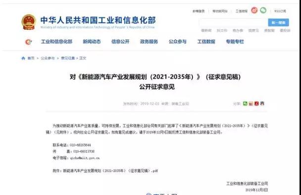 近日,工信部就《新能源汽车产业发展规划(2021-2035年)》(征求意见稿)公开征求意见。《意见稿》提出,2021年起,国家生态文明试验区、大气污染防治重点区域公共领域新增或更新用车全部使用新能源汽车。制定将新能源汽车研发投入纳入国有企业考核体系的具体办法。加快完善适应智能网联汽车发展要求的道路交通、事故责任、数据使用等政策法规。
