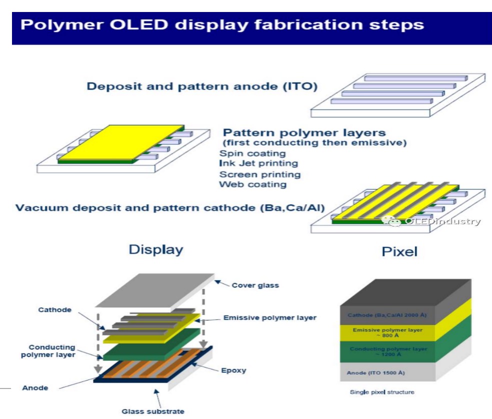 2、有机聚合物材料的化学不稳定性——有机分子易受到氧和水的侵蚀,丧失发光能力;